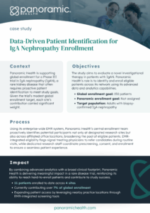 The study aims to evaluate a novel investigational therapy in patients with IgAN. Panoramic Health’s role is to identify and enroll eligible patients across its network using its advanced data and analytics capabilities.
